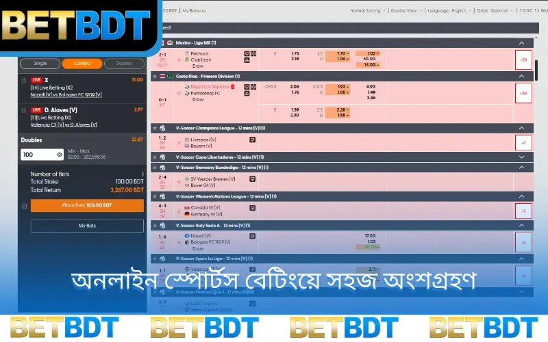 BTi একটি বৈচিত্র্যময় স্পোর্টস বেটিং সিস্টেম গড়ে তুলেছে, যেখানে কাঠামো স্পষ্ট ও সুসংগঠিত, যা বিভিন্ন ধরনের বিশ্লেষণ কৌশলের সঙ্গে সহজেই মানিয়ে যায়। প্রতিটি বেটিং অপশন স্বচ্ছভাবে উপস্থাপিত হয় এবং বাস্তব ম্যাচ পরিস্থিতি অনুযায়ী নিয়মিত হালনাগাদ করা হয়। এই বৈজ্ঞানিক বিন্যাসের কারণে ব্যবহারকারীরা ম্যাচের গতির সঙ্গে সামঞ্জস্য রেখে উপযুক্ত সিদ্ধান্ত নিতে পারেন।