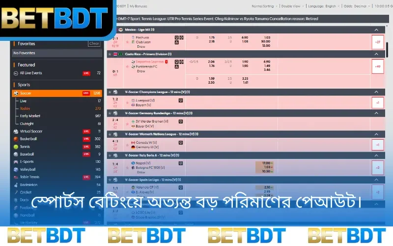 - নিয়মিত হালনাগাদ হওয়া বেটিং অপশনসহ টেনিস, ব্যাডমিন্টন ও টেবিল টেনিস, যেখানে গতিশীল সূচি ব্যবহারকারীর আগ্রহ ধরে রাখতে সহায়ক