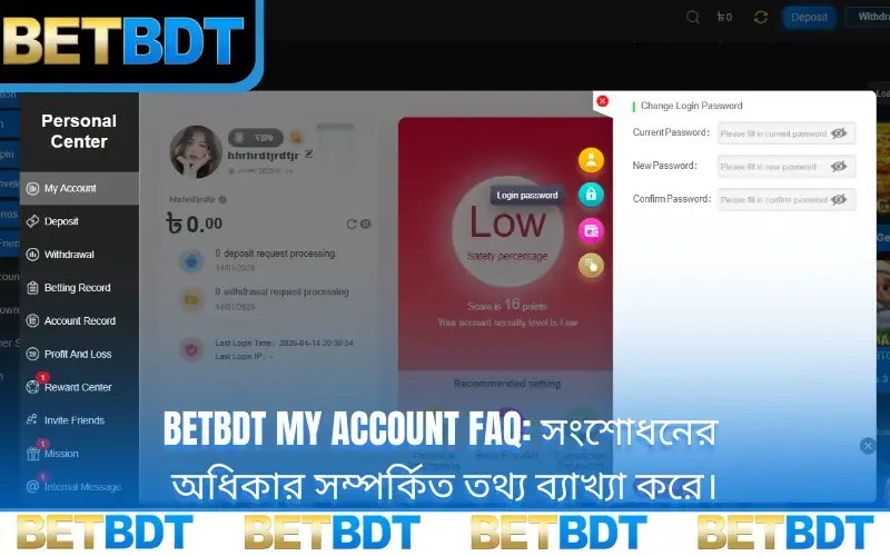 BETBDT my account FAQ-এ তথ্য সংশোধন সম্পর্কে কী বলা হয়েছে?