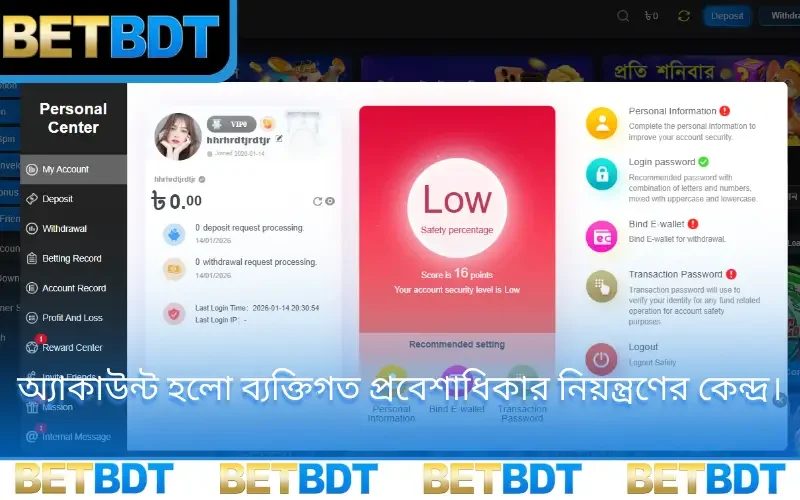 BETBDT my account FAQ সাধারণত অ্যাকাউন্টের মৌলিক ধারণা দিয়ে শুরু করে, যাতে ব্যবহারকারীরা শুরু থেকেই সঠিক ও পূর্ণাঙ্গ ধারণা গড়ে তুলতে পারে। এই অ্যাকাউন্ট মূলত একটি ব্যক্তিগত ম্যানেজমেন্ট স্পেসকে প্রতিনিধিত্ব করে, যেখানে একই統一 সিস্টেমের ভেতরে সমস্ত casino বিনোদনমূলক গেম সংযুক্ত থাকে এবং কেন্দ্রীয়ভাবে নিয়ন্ত্রিত হয়।