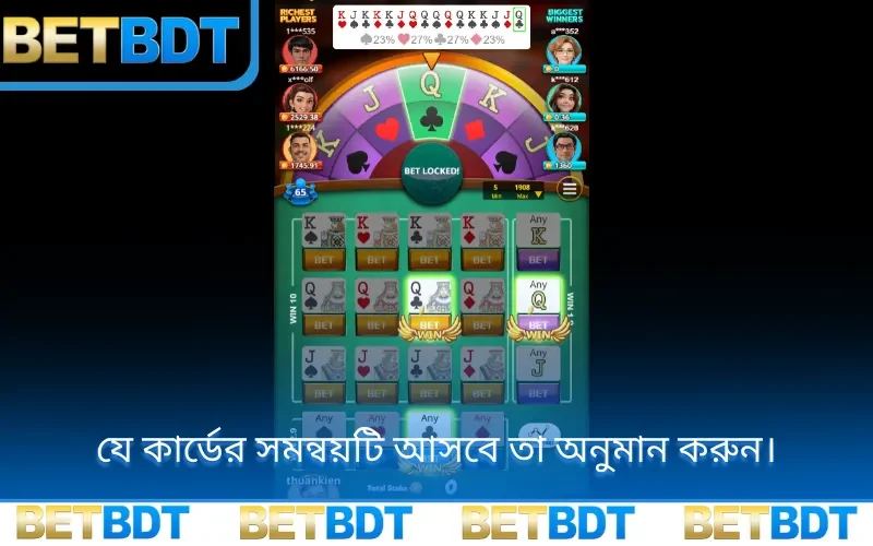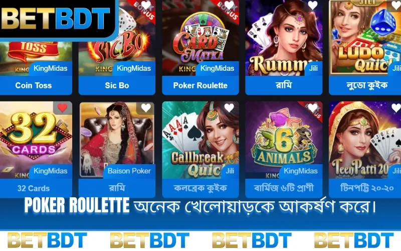গ্রাহকদের চাহিদা মেটাতে BETBDT বাজারে নিয়ে এসেছে সম্পূর্ণ নতুন Poker Roulette। এই গেমটি পোকার কার্ডের উত্তেজনা এবং রুলেট চাকা ঘোরানোর মেকানিজমকে নিখুঁতভাবে একত্রিত করেছে।